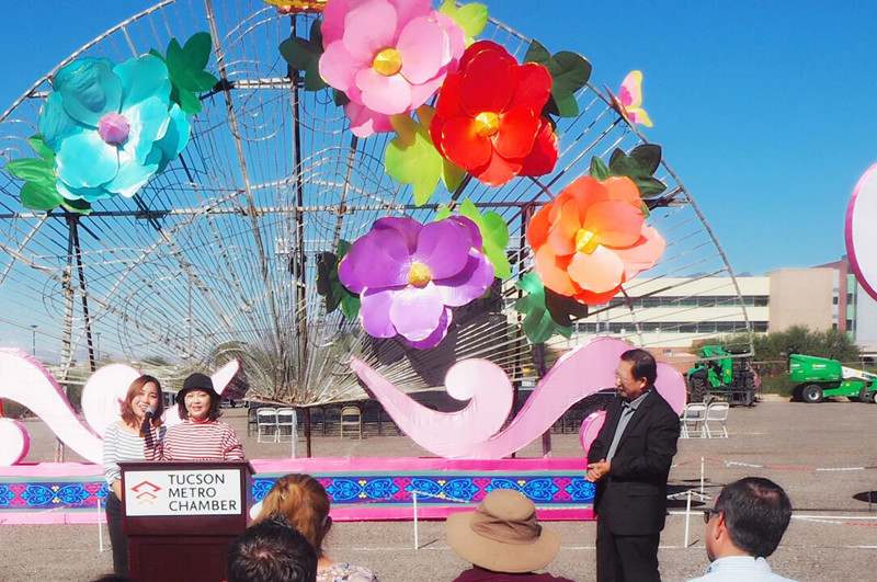 璀璨絢麗、獨(dú)具神韻的“2018世界之光圖森彩燈嘉年華”于11月7日在美國(guó)西部城市圖森華彩綻放。燈展受到當(dāng)?shù)卣蜕鐣?huì)各界的廣泛關(guān)注。Pima郡行政長(zhǎng)官、圖森市常務(wù)副市長(zhǎng)、市議會(huì)議員、郡商會(huì)會(huì)長(zhǎng)、市大都會(huì)商會(huì)董事長(zhǎng)、市旅游局局長(zhǎng)、市交通局局長(zhǎng)等美方官員出席開幕式。